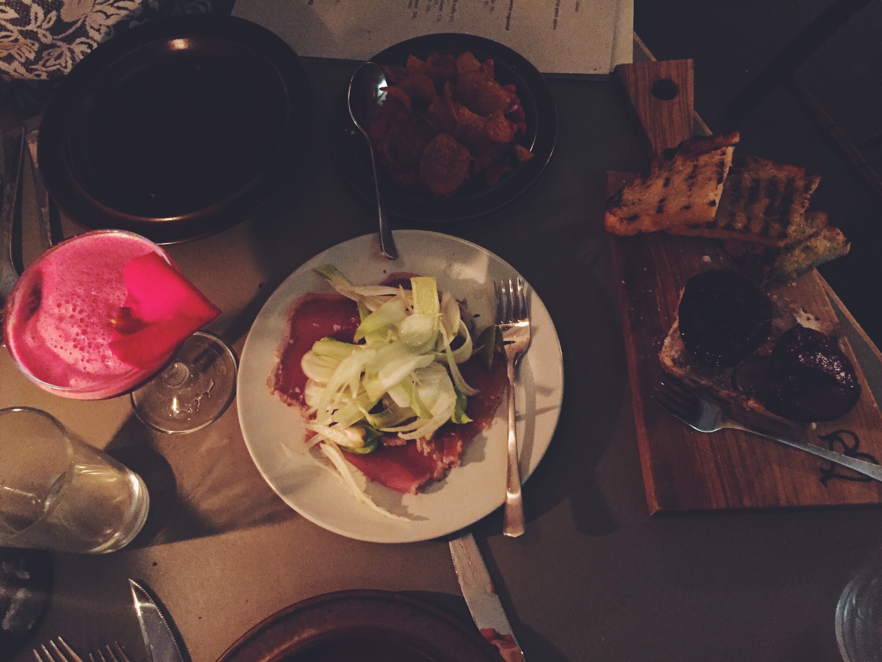 Angela had a beet cocktail at that first restaurant we went to. If possible, I would have bathed in it – it was that good. Sure it would have stained my skin and probably burned in certain areas but the heart wants what it wants.